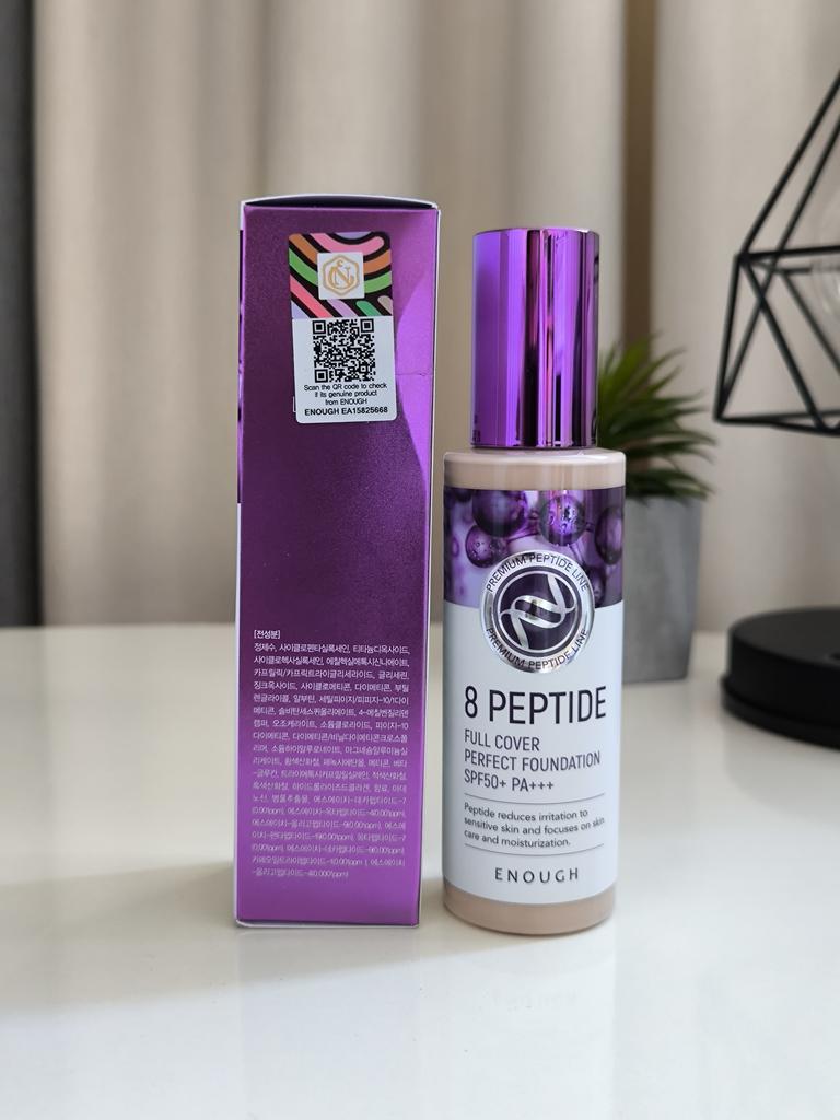 ENOUGH 8 Peptide Full Cover Perfect Foundation #13 Light Beige, 100ml+RANDOM GIFT