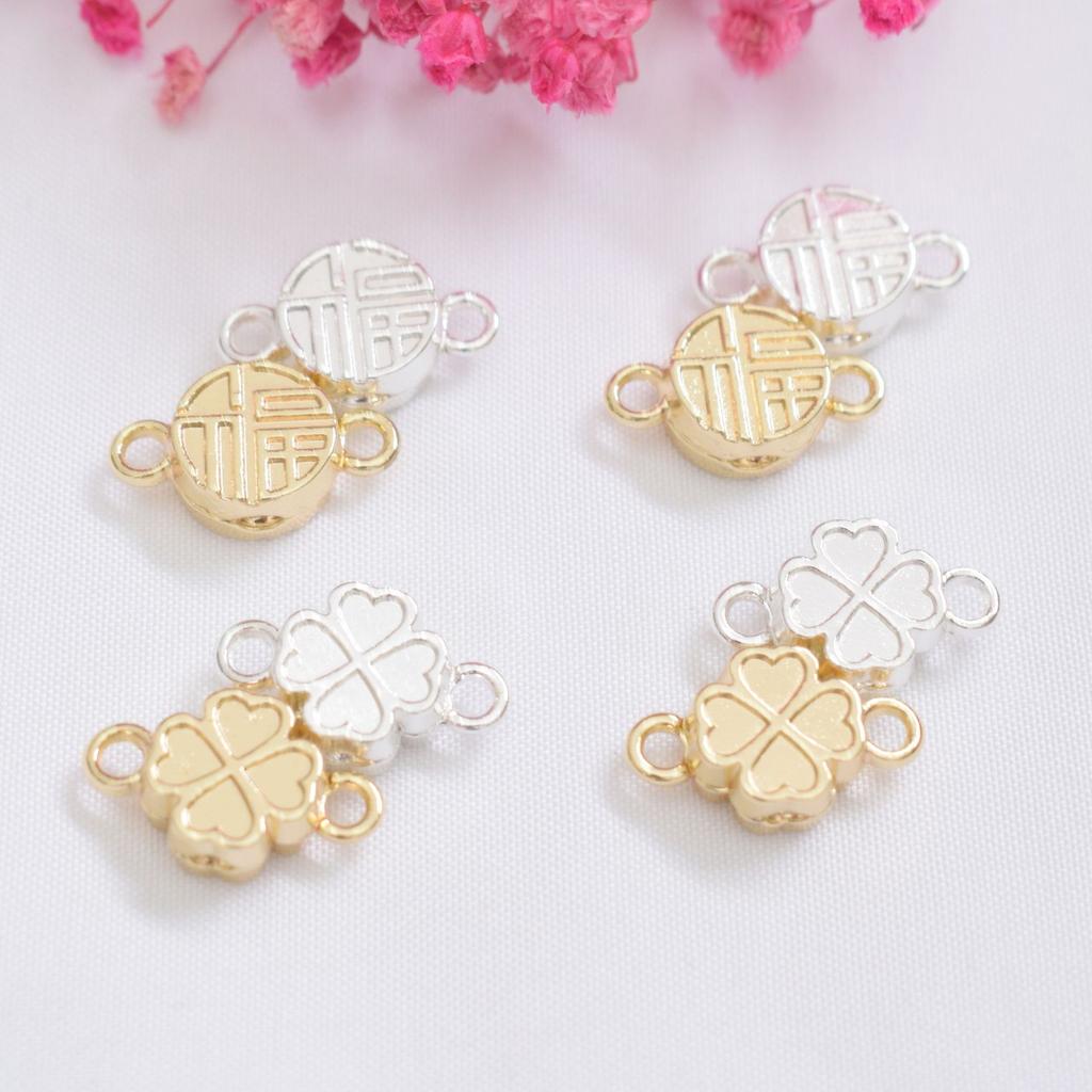10pcs Color Retention 14K Gold Four-Leaf Clover Magnet Buckle, Lucky Jewelry Buckle, Accessories Diy Handmade Beaded Material, Finishing Button Head