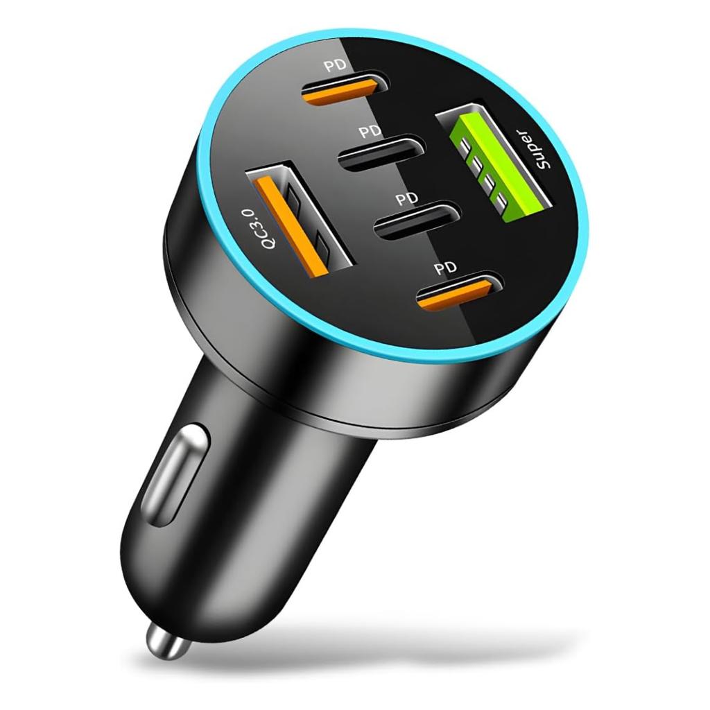 66W 6-Port Car Charger with PD & QC 3.0, 12-24V Fast Charging, Universal for Smartphones