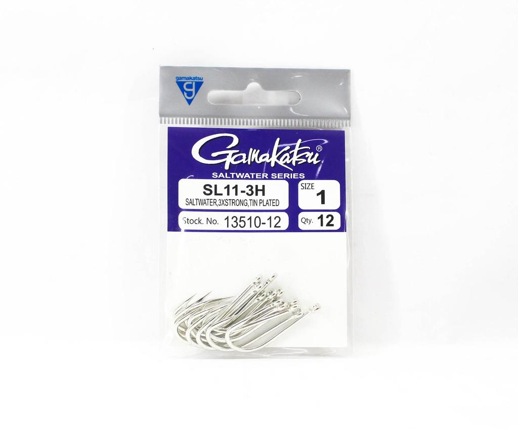Gamakatsu 13510 SL11-3H Big Game Tin Plated Hook Size 1 , 12/pack (3401)