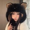 Cute Blush Fox Plush Hat Female Autumn And Winter Thickened Warm Ear Protection Lei Feng Cap Riding Ski Cap Tide