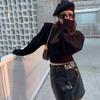 Vintage High-waisted Threaded Pullover Sweater V-neck Waist Waist Short Twist Sweater Women's Fashionable Slimming Autumn and Winter New