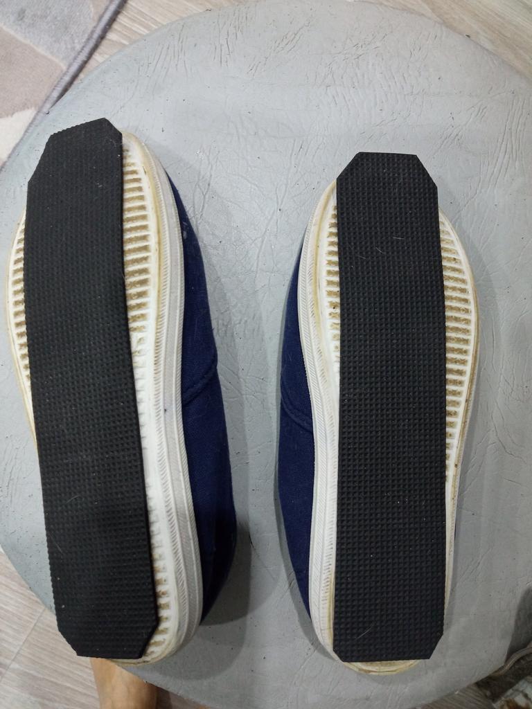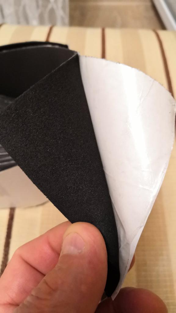 1. The goods arrived not in coils, but in strips.. 2. The glue is only on the paper, there is not a drop of glue left on the rubber, so the "self-adhesive" part is a lie.. 3. The rubber thickness is maximum 1.5 mm. There is no talk about durability at all, this rubber is definitely not for shoes.