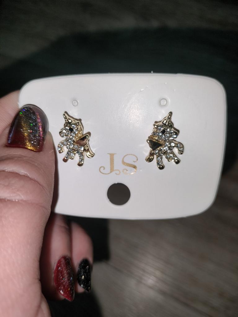 One earring didn't have a black pebble (the unicorn's eye)