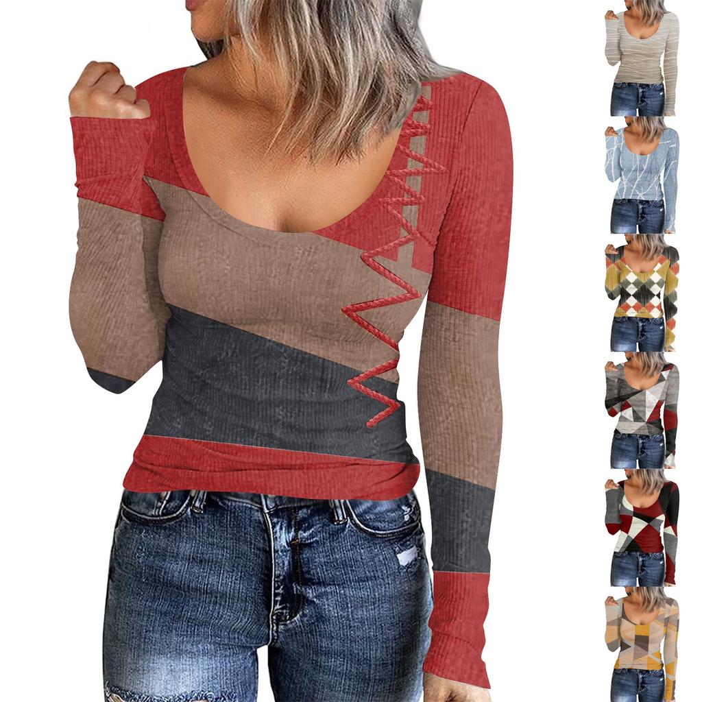 Women's Autumn And Winter Slim Bottom T-shirt Fashion Casual Solid Color U Neck Pullover Long Sleeve Top