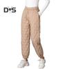 The elastic waist ensures a comfortable fit, while the diamond-shaped texture design adds a touch of uniqueness. Made from quilted material, these pants are both warm and cozy, perfect for chilly days.