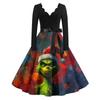 Women's Casual Fashion Print Long Sleeve Dress Cutout Party Casual V Neck Dress
