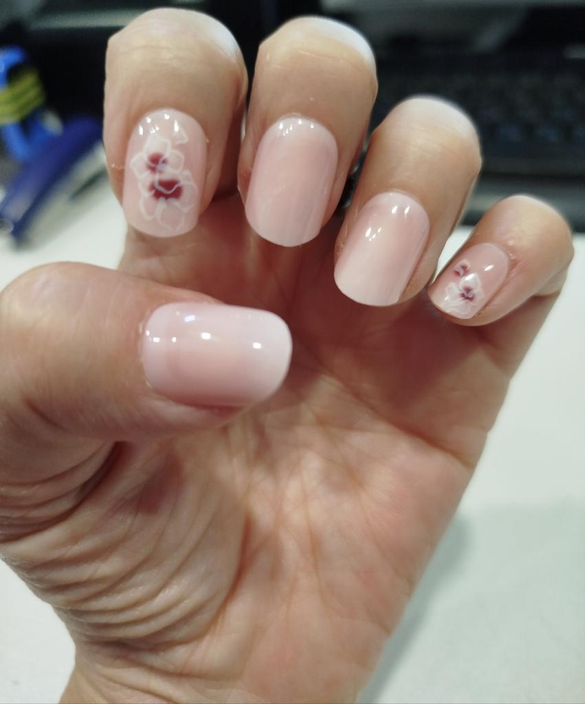 24pcs Glossy Short Square Fake Nails, White Pinkish Gradient Press On Nails With Flower Design, Sweet Cool Full Cover False Nails For Women Girls