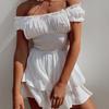 Waist Hugging Slim Fit Dress Chest Wrapped Short Sleeve One Shoulder Summer Cotton Linen Embroidered Short Dresses