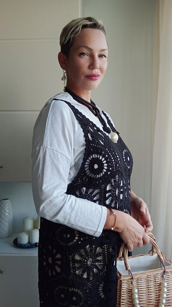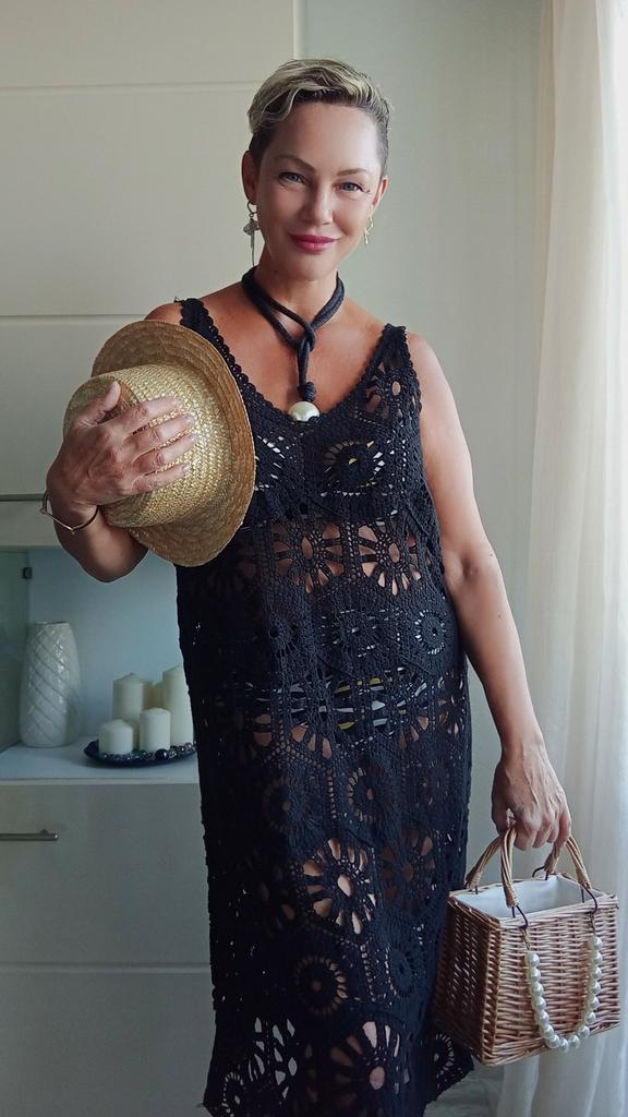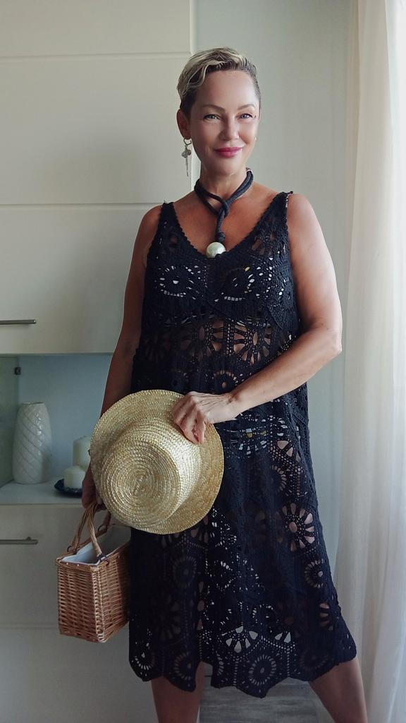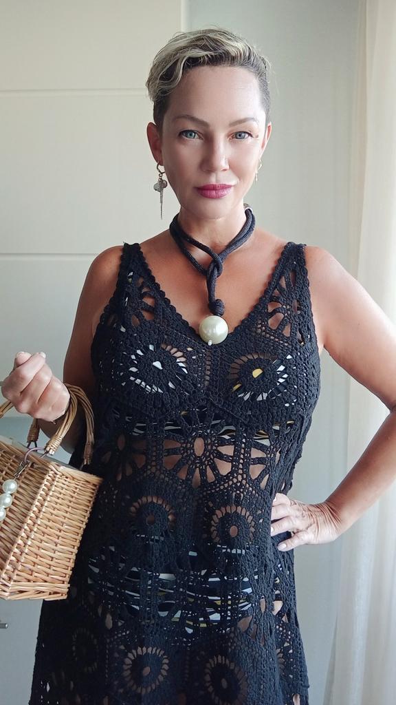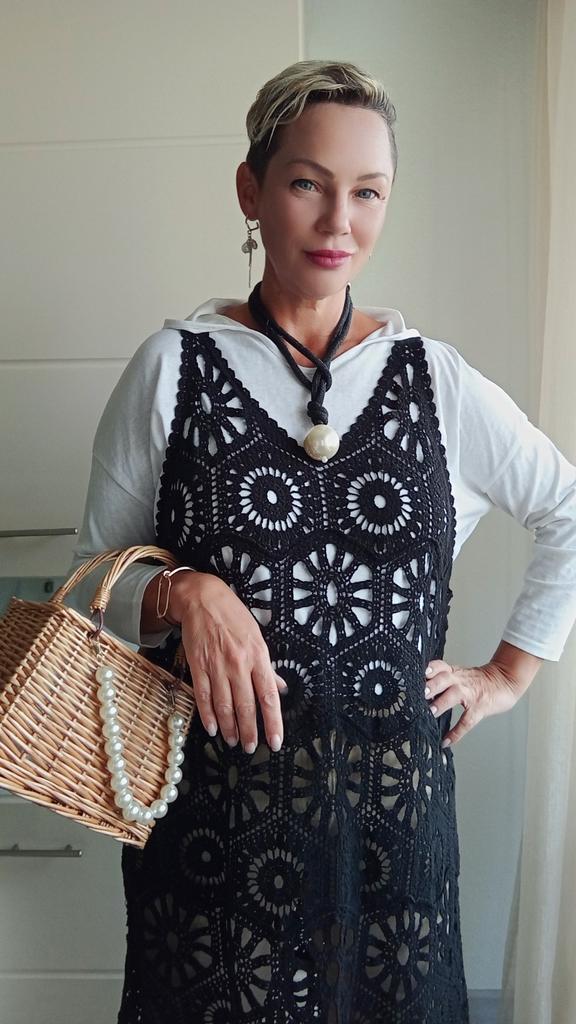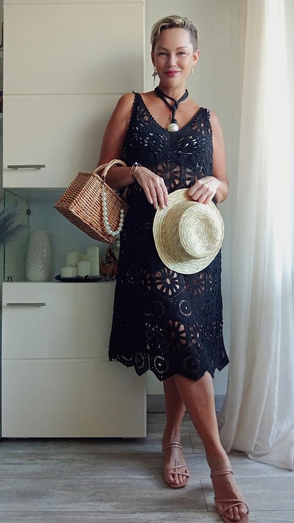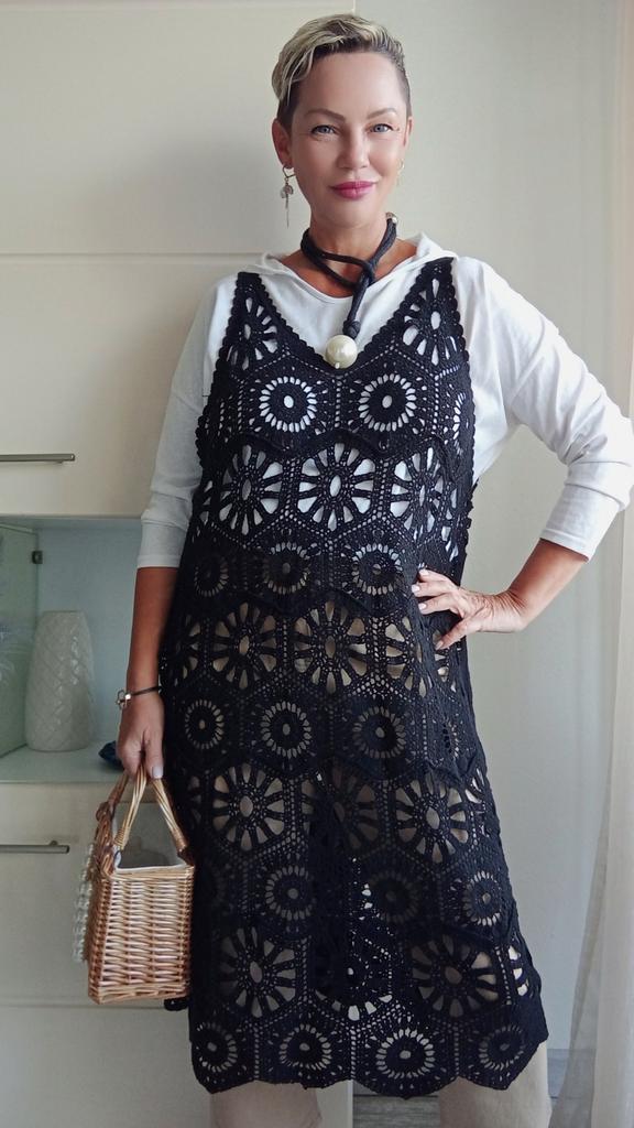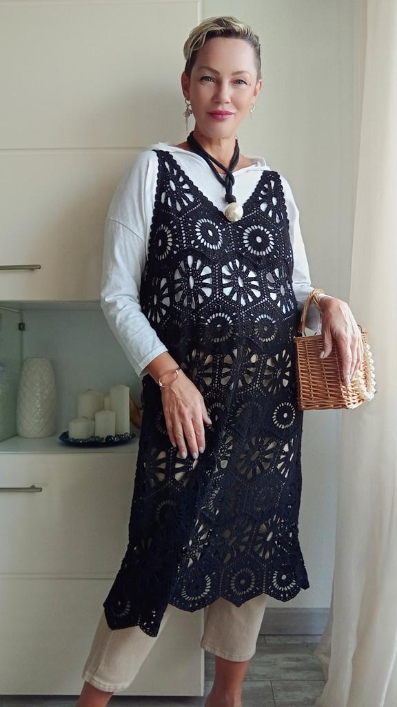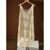 DIMANAF 2024 New Dress Women Knitting Lace Long Hollow Out Sexy Vest O-Neck Hollow Summer Style Tops Tees Loose Basic Black