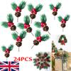 24Pcs Christmas Artificial Flower Red Berry Pine Cone Holly Xmas Party Decor