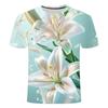 2024 Summer Creative 3D Printed Various Water Flower Series, Niche Fashion Men's and Women's Round Neck T-shirt