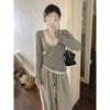 DAFIFY Women's Fashion Casual Fall Winter Solid Color Print Long Sleeve V-Neck Sweaters
