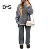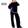 Versatile Design: This women's 2-piece casual suit features a round neck, long sleeves, and splicing for a chic yet comfortable look. The elastic waist and pockets on the pants add functionality and style, making it perfect for work or leisure activities.