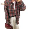 Stylish Lapel Design: Elevate your wardrobe with this shirt's lapel collar and chic plaid pattern. The single-breasted button cardigan style adds a touch of sophistication, while the sleeves can effortlessly hang loose or roll up for versatility.