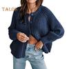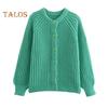 Elevate your wardrobe with this versatile sweater cardigan. This classic piece can be effortlessly styled with a basic T-shirt, open-neck top, skirt, dress, jeans, leggings, boots, or high heels to add a touch of fashion to any outfit. Featuring a round neckline, long sleeves, slightly oversized volume, beaded rib knit, delicate buttons, and a timeless solid color, this cardigan is a must-have for every woman's closet.
