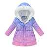 Autumn Winter Children's Clothing Boys Girls Multicolor Waist Printing Tie-dye Long Section of The Hair Collar Hooded Cotton Coat Jacket Cotton Coat