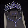 Blue Crystal Bridal Jewelry Sets for Women Fashion Tiaras Wedding Dress Crown Necklaces Earring Set Bride Jewelrry Accessories