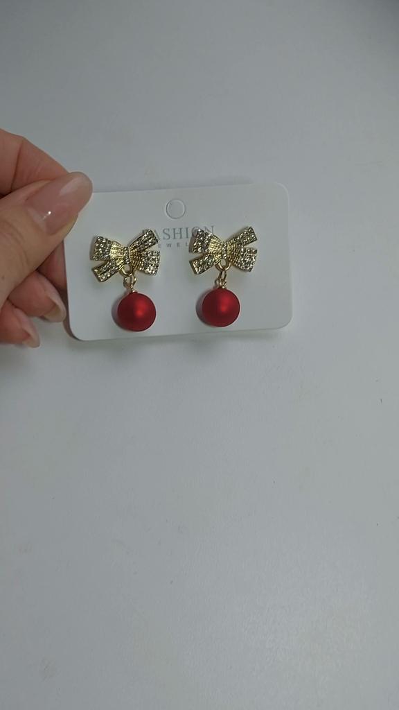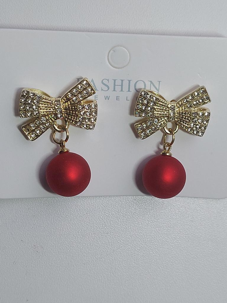 Elegant Pearl Bowknot Stud Earrings For Women Girl Christmas Jewelry Sweet Heart Ball Crystal Drop Earrings Xmas Party Gift
