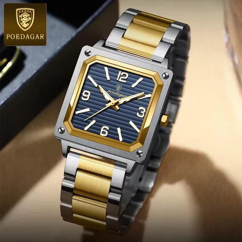 POEDAGAR Casual Design Men's Square Business Quartz Wristwatch Waterproof Luminous Stainless Steel Men Watches Relogio Masculino