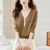 DAFIFY Women's Fashion Casual Fall Winter Solid Color Print Long Sleeve V-Neck Sweaters