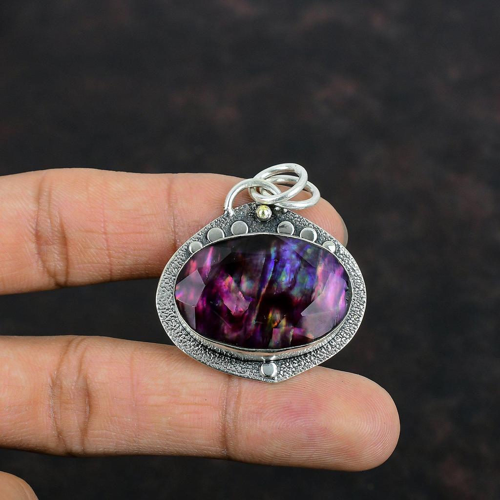 Faceted Ammolite Pendant Original Gemstone Pendant Antique Jewelry 925 Sterling Silver Pendant Handmade Pendant Stylish Pendant Wedding Gift