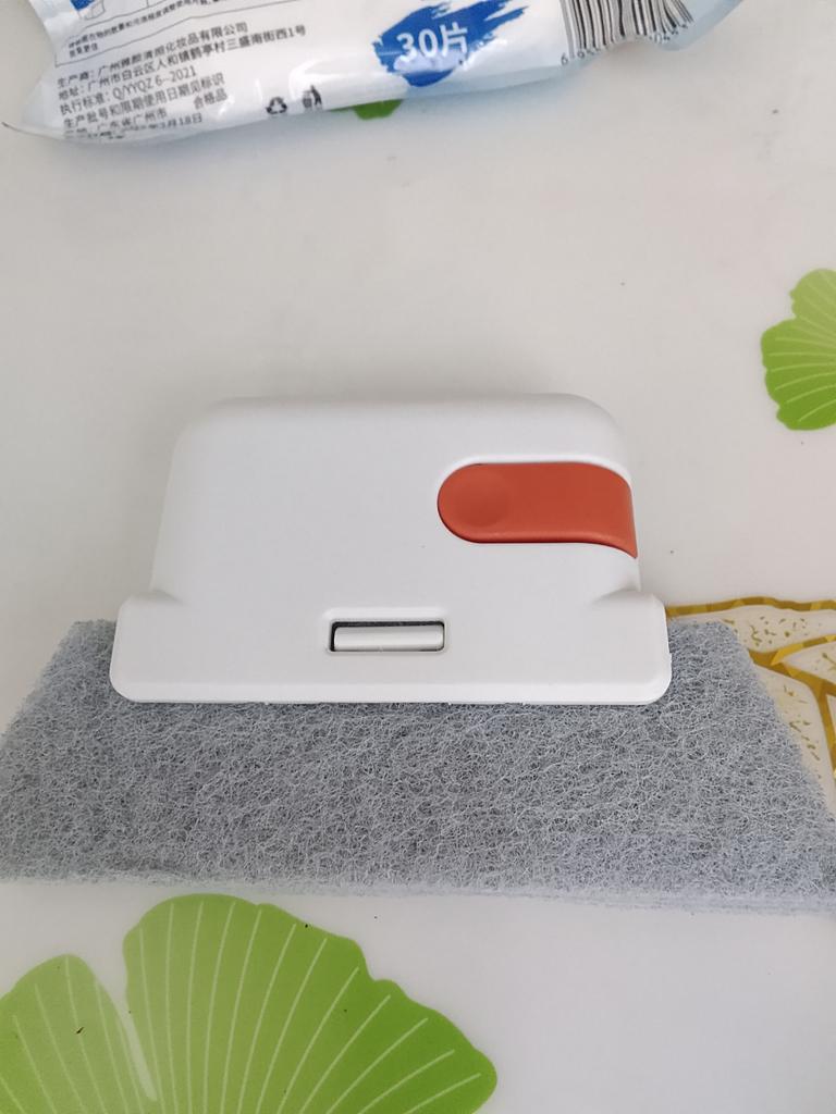 The brush looks normal, quite sturdy. Haven't tried it in action. The washing strips are quite stiff, which is convenient. You can wash any surfaces, tiles, shower cabin glass, mirrors