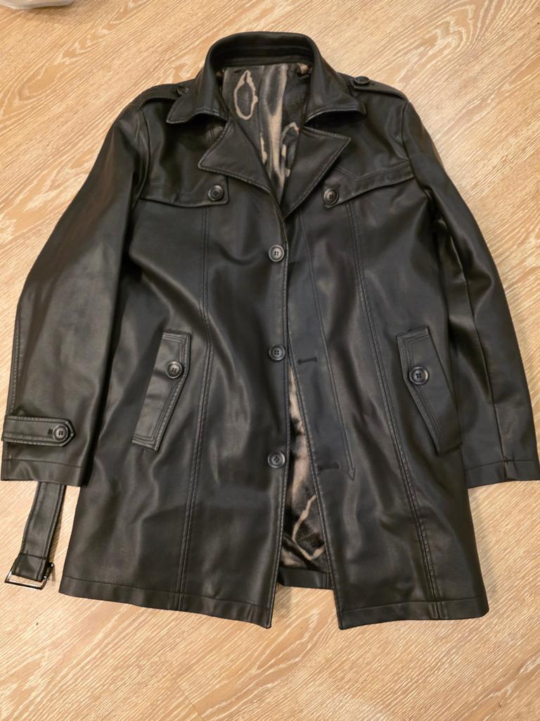 Large Size Middle-aged Men's Fleece Sheepskin Leather Jacket, Mid-length Coat, Lapel Daddy Leather Jacket