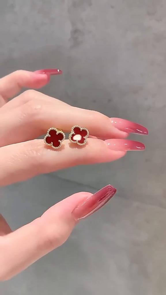 Four Leaf Grass Earings, Light Luxury White Fritillaria Red Agate Malachite Stud Earrings Female Drop Earrings