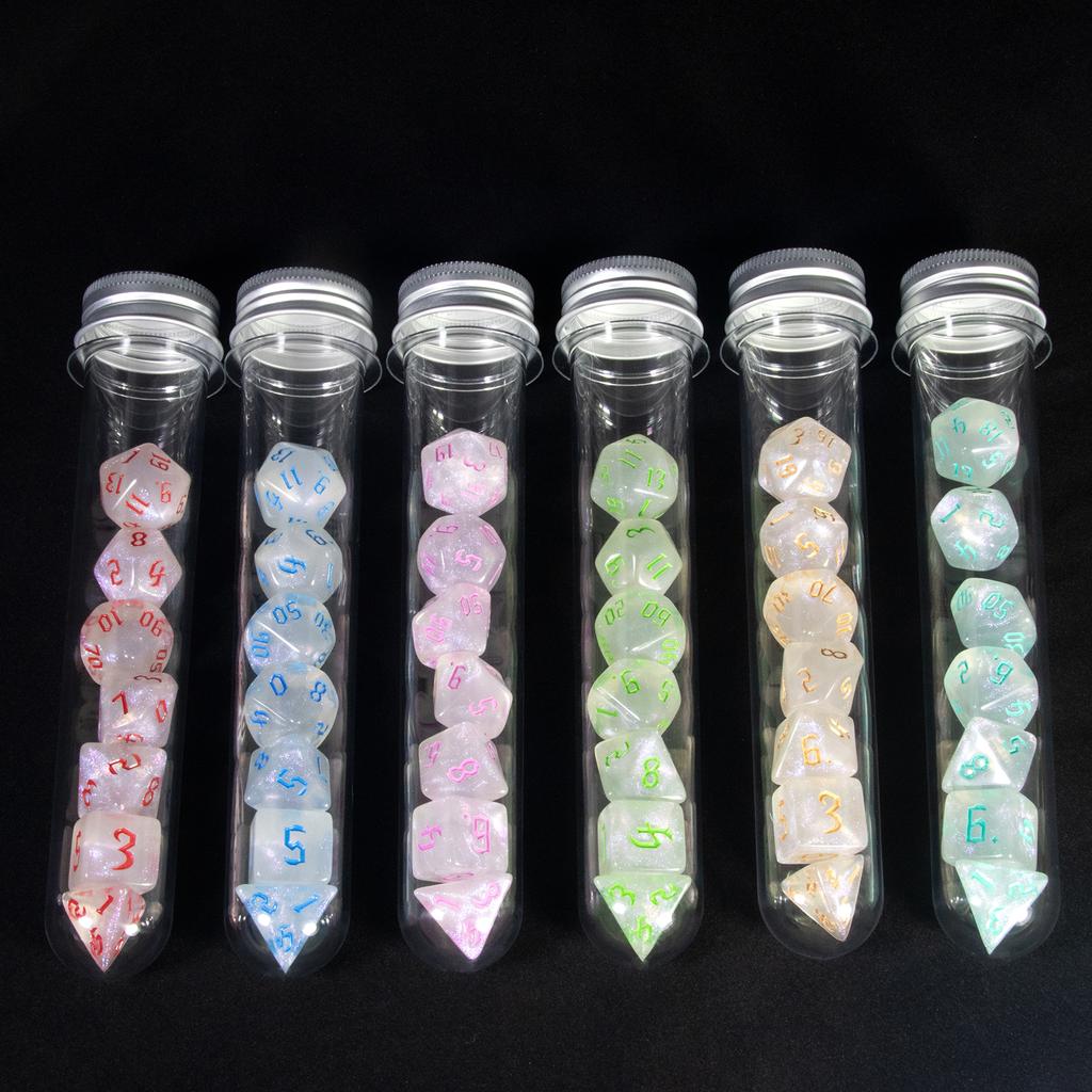 7pcs DND Dice Set with Tube Glitter Polyhedral Dice Playing Dice Game for Table Game