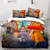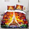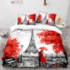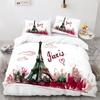 Paris Eiffel Tower Themed Couple Duvet Cover Set Cityscape Comforter Cover Romantic Polyester Bedspread Cover Pink Floral King