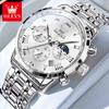 OLEVS Luxury Quartz Watch For Men Roman Scale Moon Phase Chronograph Man Watches Waterproof Luminous Calendar Wrist Watch