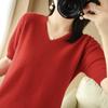 New Spring Short-sleeved Autumn and Winter Sweater Sweater V-neck Half-sleeve Trendy Versatile Korean Style Loose Bottoming Shirt T-shirt for Women