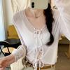 Korean Unique Niche Design Sense Thin Long Sleeve Strap with Sun Protection Outside Cardigan T-shirt Women's Early Autumn New Top