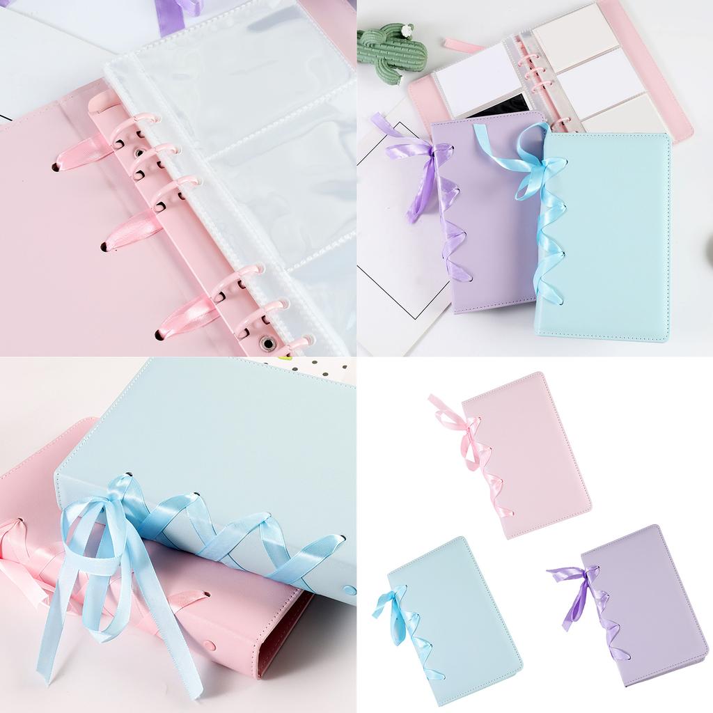 A6 Photo Album with 25 Inner Pages PU Leather Binder Album Lovely Bows Photo Book Kpop Photocard Holder for 3'' Photo