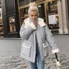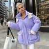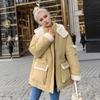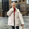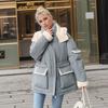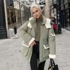 Lamb Wool Cotton Jacket For Women 2024 Winter Contrast Hooded Casual Parkas Coats 2 Pocket Thicken Warm Jacket Women's Clothing