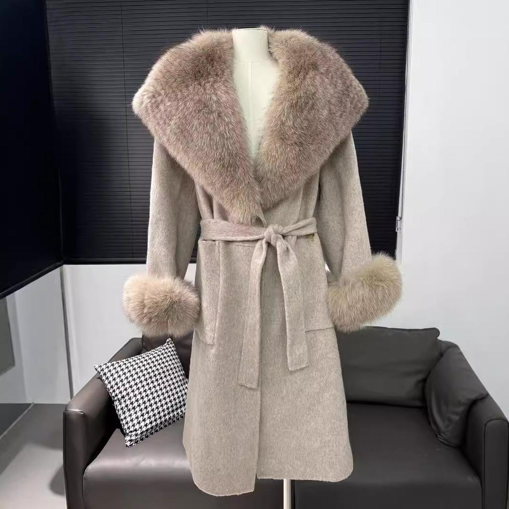 New Autumn and Winter Double-sided Wool Coat for Women Long Fashion Simple Style Fox Fur Collar Woolen Coat for Women