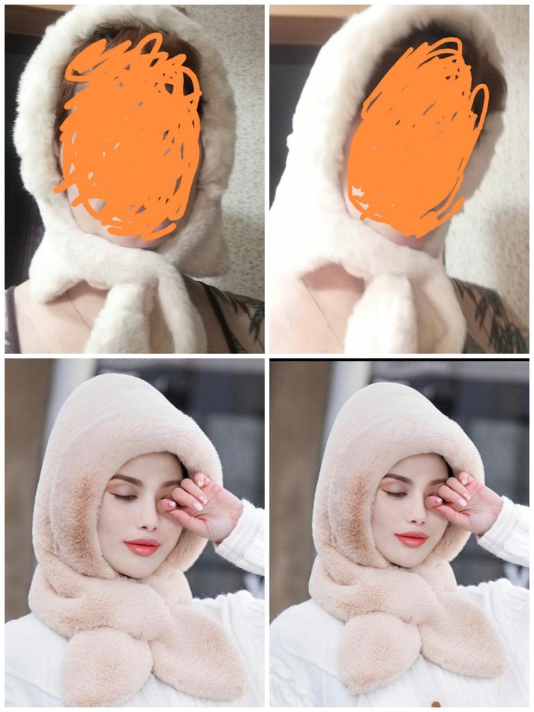 1PC Thick Ear Protection Windproof Outdoor Women Winter Faux Fur Hat Hooded Scarf Scarves