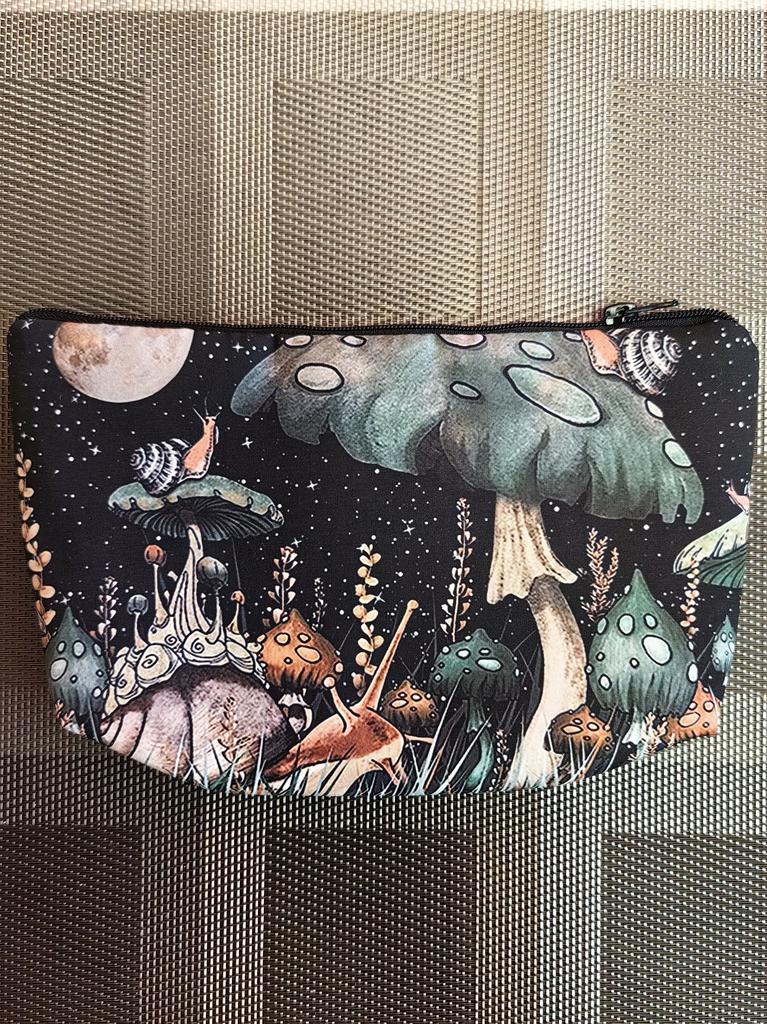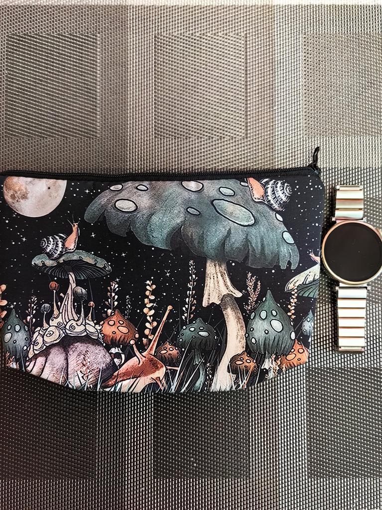 Mushroom Pattern Cosmetic Bag Portable Zipper Makeup Bag Multifunctional Storage Pouch Trendy Toiletry Wash Bag Makeup Bag