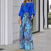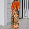 Women's Set Solid Color Lantern Sleeve Loose Top Printed Wide-leg Pants Two-piece Set