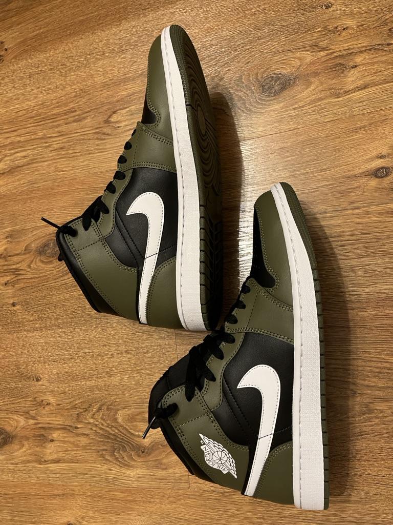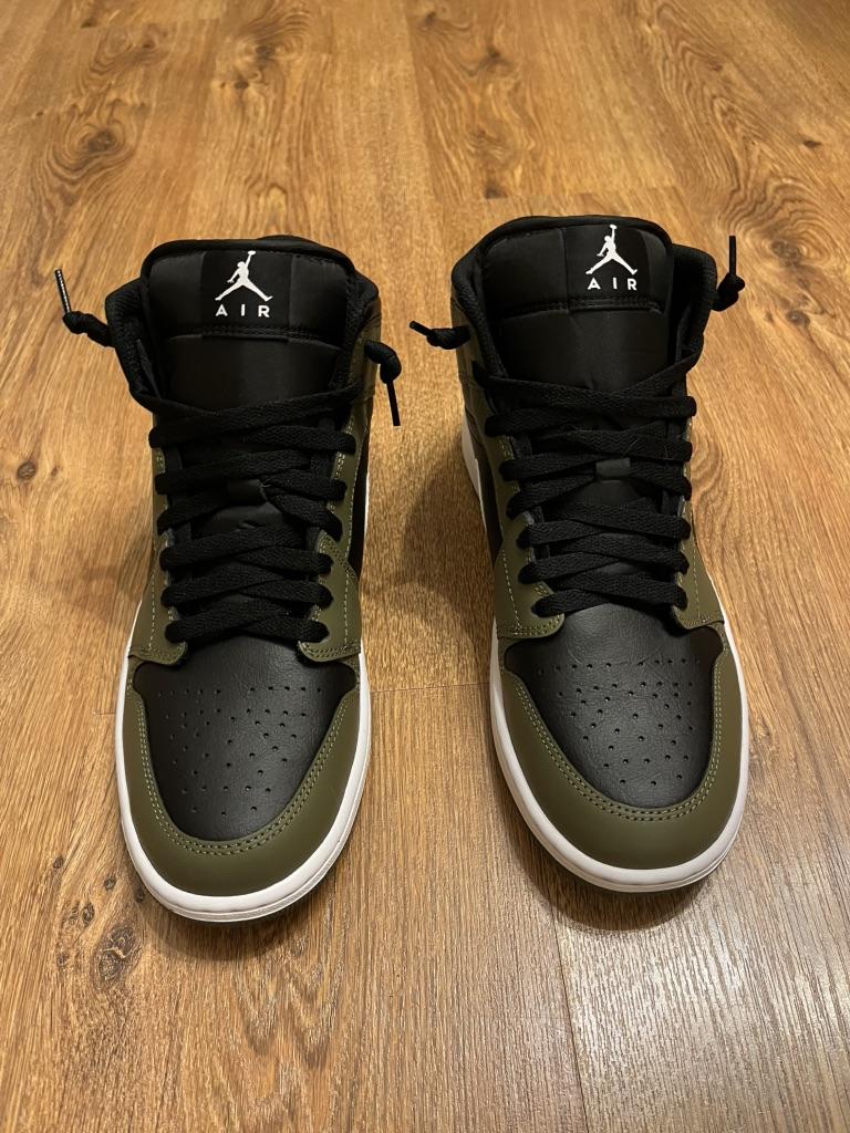 Air Jordan 1 Mid Medium Olive Unisex Sneakers Green Black White DQ8426-092