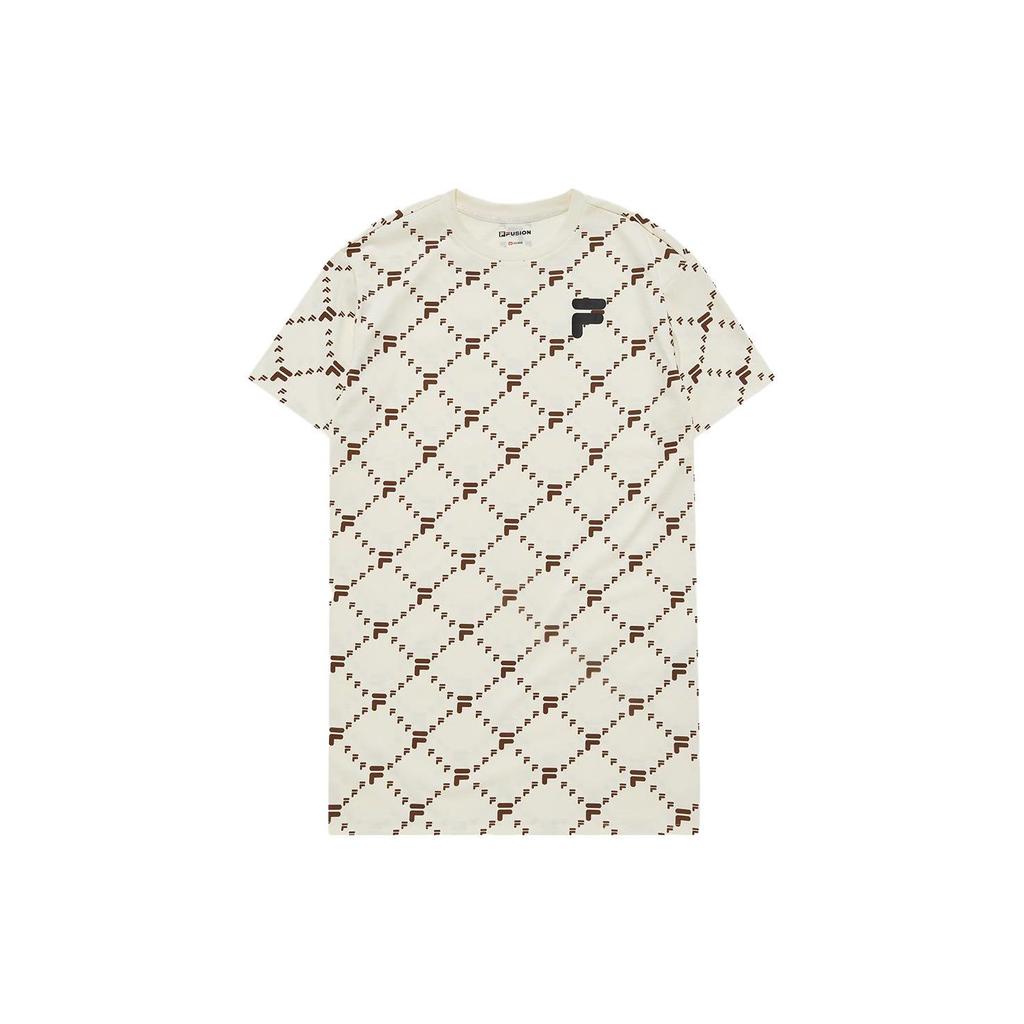 Fila All Over Plaid Trendy Oversized Round Neck Short Sleeve Dress Women Dresses Antique-White T11W226308D-IV