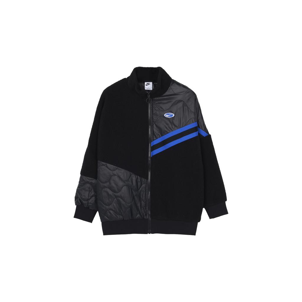 Nike Solid Color Logo Print Fleece Stand Collar Long Sleeve Jacket Women Jackets Black FB1821-010