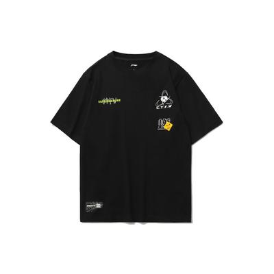 Li Ning Graphic Print Round Neck Short Sleeve T-Shirt Men Tops Black AHSR359-1