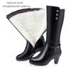 New Winter Footwear Genuine Leather Women's Boots Fashion Chain Wool Warm Boots Women High Heel Riding Boots Shoes Women