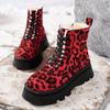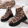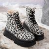 Lucyever Punk Leopard Print Combat Boots Women Fashion Chunky Thick Plush Ankle Boots Woman Lace Up Platform Booties Mujer