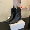 Pointed Toe Women Western Cowgirl Boots Fashion Slip On Shoes Autumn Winter Thick Heel Women's Knight Short Booties