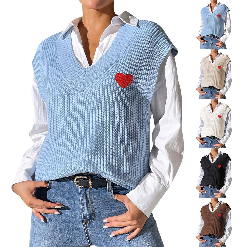 Women's V-neck Vest Embroidered Love Sticker Sweater Vest