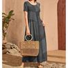 Women's Maxi Dress Summer Short Sleeve Round Neck Patchwork Contrast Loose Hem Pleated A Line Ankle Length Plus Size Dress