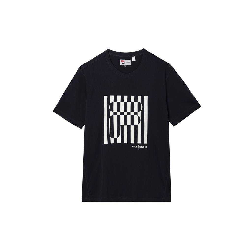 Fila X Études Striped Logo Print Crew Neck Short Sleeve T-Shirt Men Tops Legendary-Blue F11M326108F-NV
